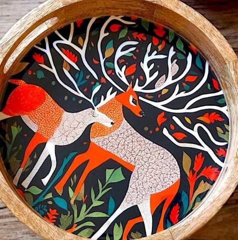 MDF ahşap ve Meena üst el hazırlanmış ahşap el boyalı dekoratif servis tepsisi üzerinde çalışmak